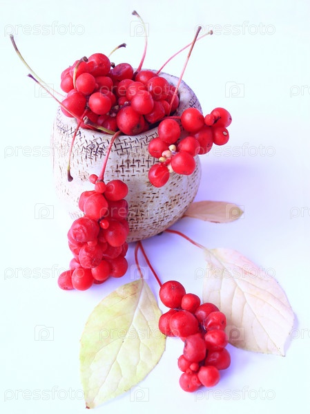 Красный спелый лимонник в ведре