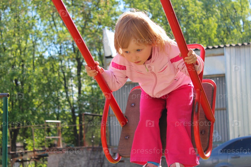 Маленькая девочка на качелях