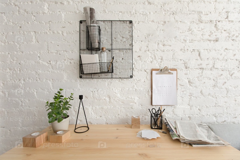 Деревянный рабочий стол в домашнем офисе