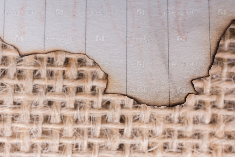 Кусок сожженной бумаги на льняном холсте