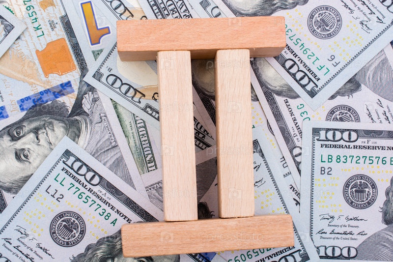 Деревянные строительные блоки на банкнотах доллара США