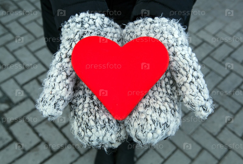 Красное сердце в руках