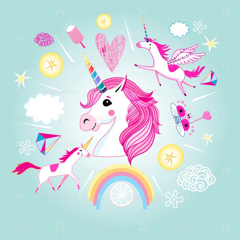 Набор единорогов и сказочных объектов