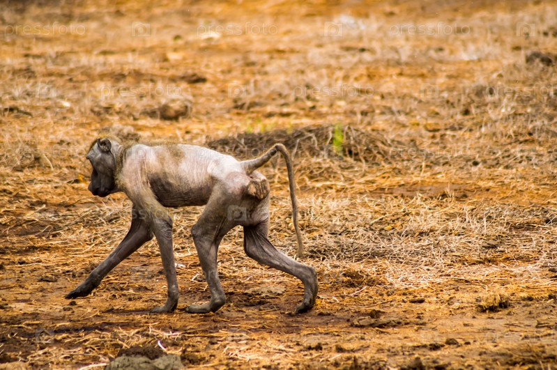 Больной павиан в саванне Амбосели парк в Кении