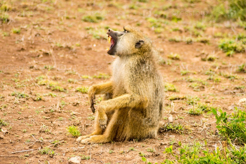 Бабуин в саванне в Амбосели парке на северо-западе Кении