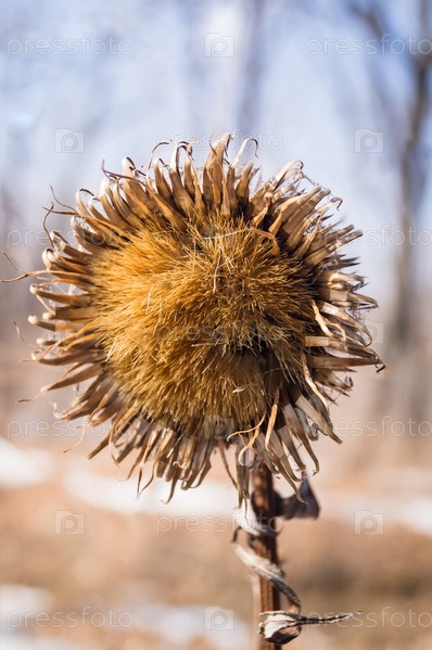 Сушеный репейник в зимнем лесу