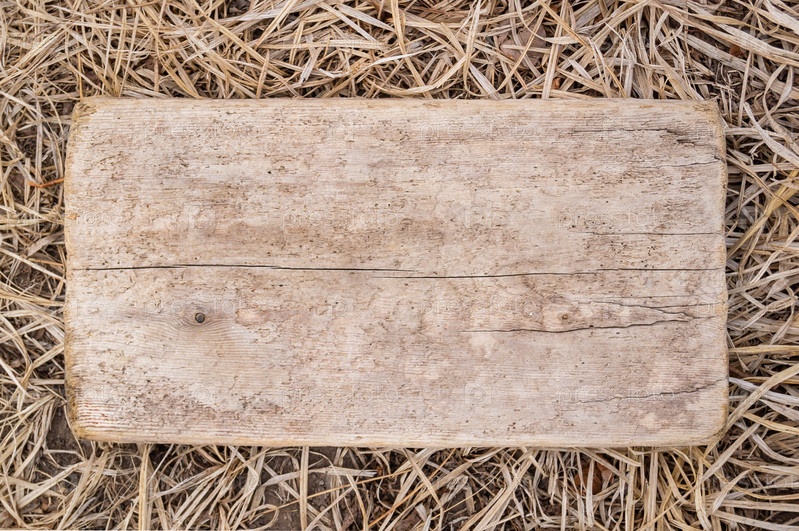 Деревянная доска на фоне сухой осенней травы