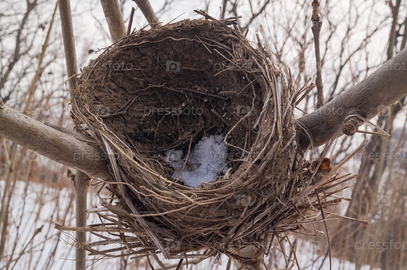 Гнездо в зимнем лесу
