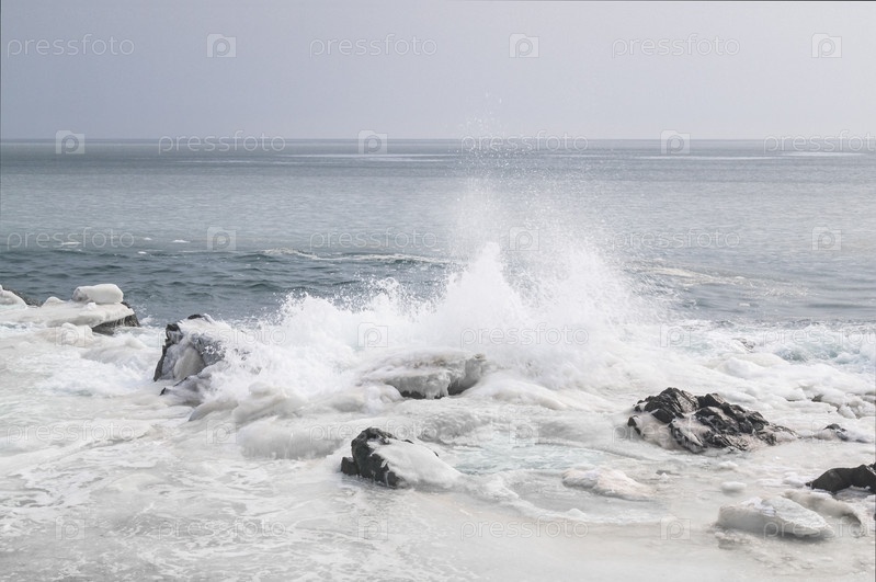 Морской берег, лед и волны. Дальний Восток