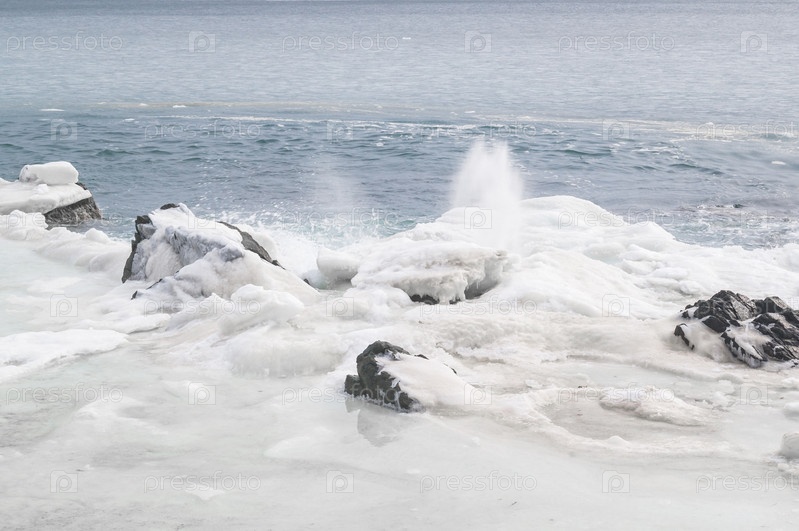 Морской берег, лед и волны. Дальний Восток