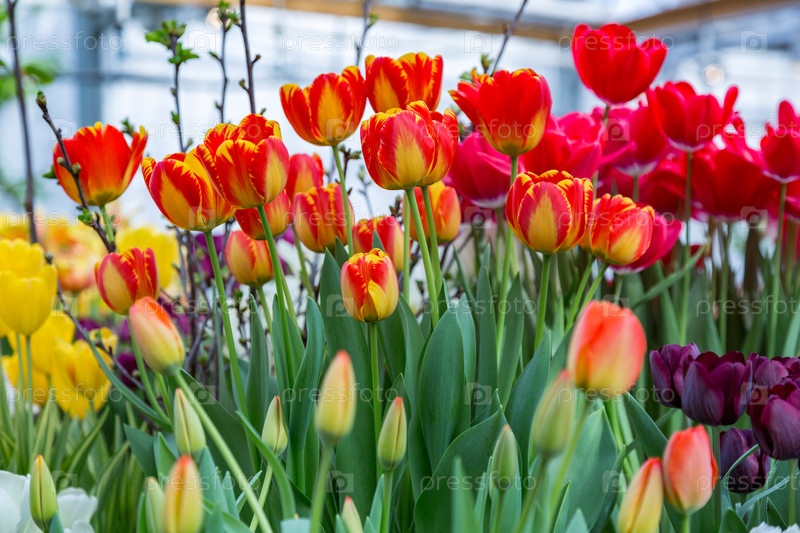 Яркие свежие тюльпаны