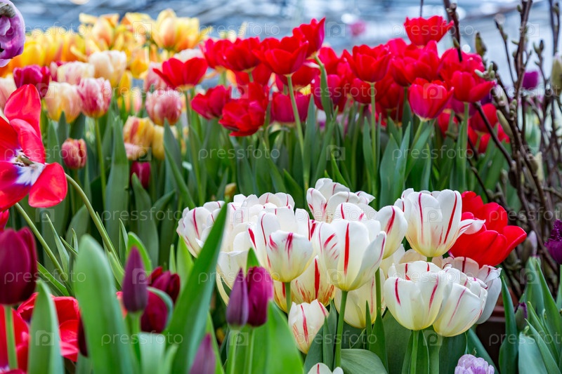 Яркие свежие тюльпаны