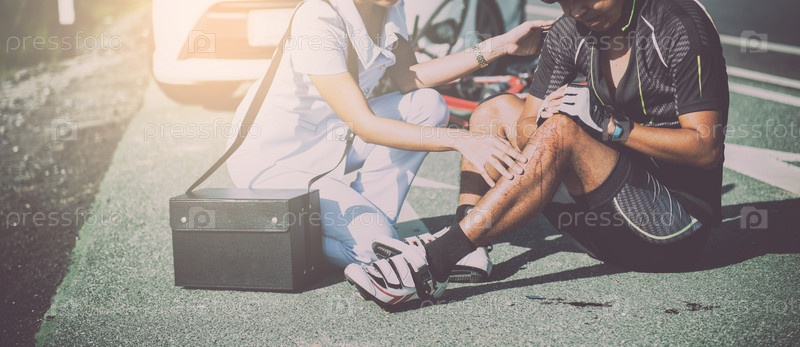 Травмированный человек получает первую помощь