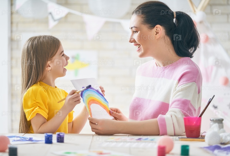 Мать и дочь рисуют вместе