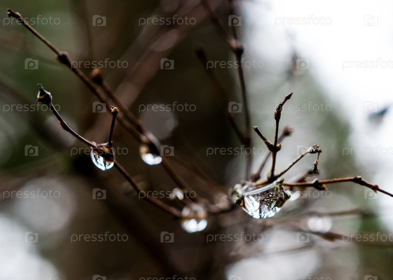 Капли дождя на ветвях
