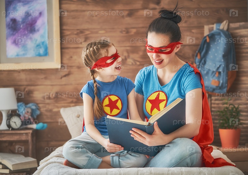 Девочка и мама в костюме супергероя