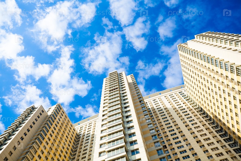 Новый жилой дом с видом на голубое небо