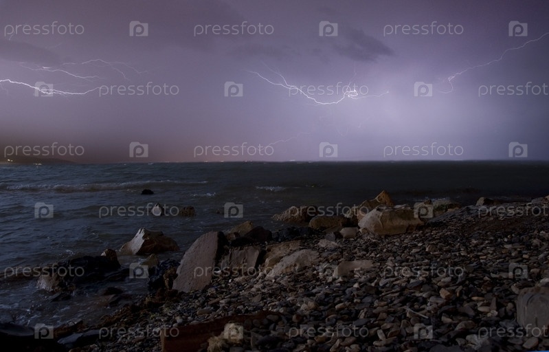 Вечерняя гроза на берегу моря