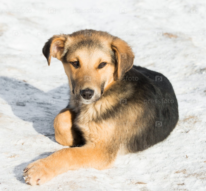 Маленький щенок в снегу