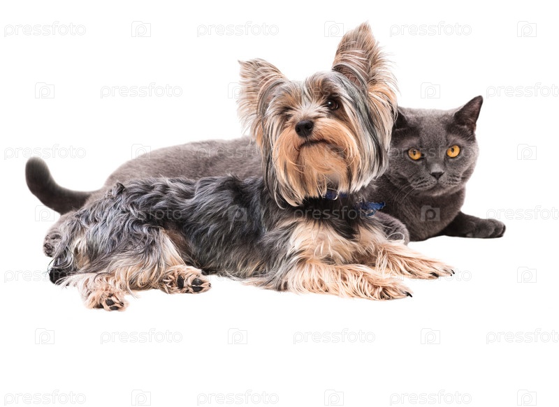 Собака и кошка, сидя рядом