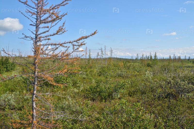 Пожелтевшая лиственница в тундре Таймыра