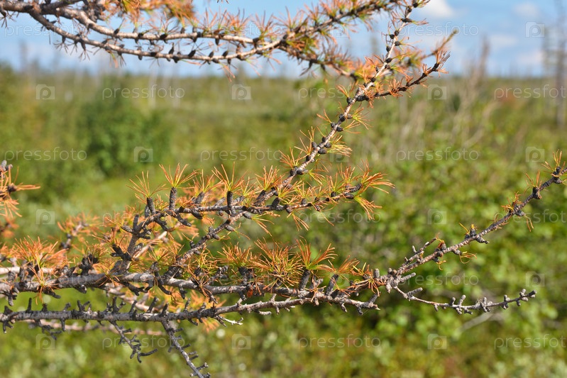 Пожелтевшая лиственница в тундре Таймыра