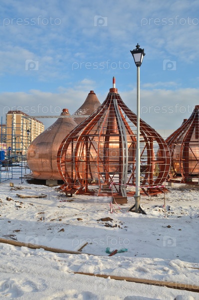 Строящаяся православная церковь на окраине Москвы