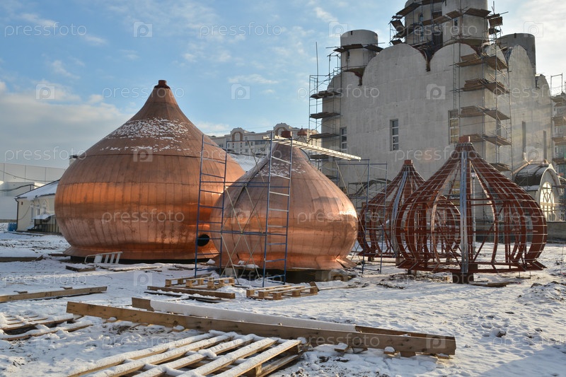 Строящаяся православная церковь на окраине Москвы