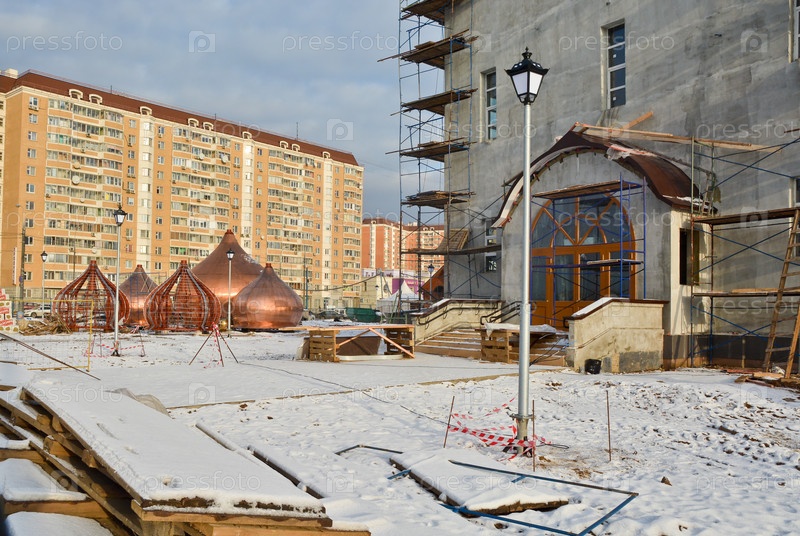Строящаяся православная церковь на окраине Москвы