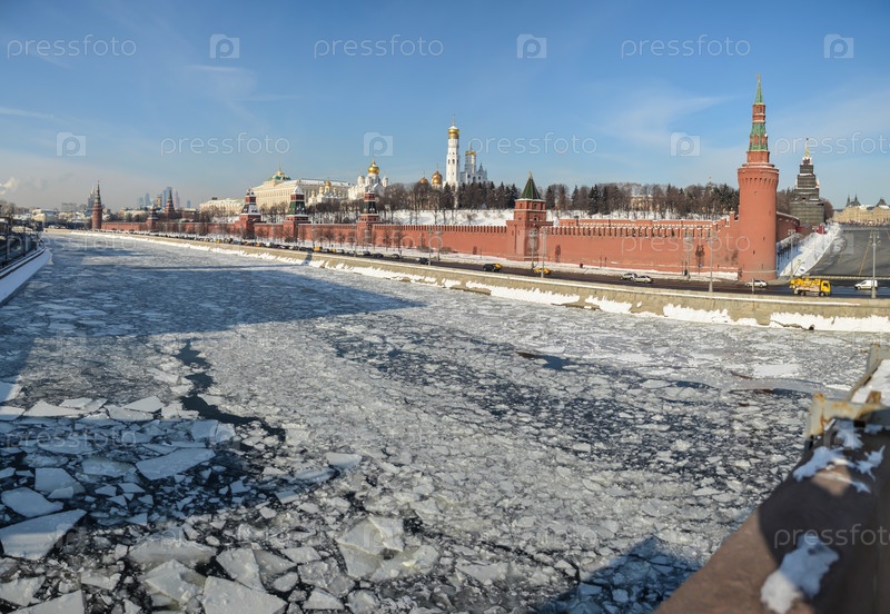 Зимняя панорама набережной Кремля в Москве