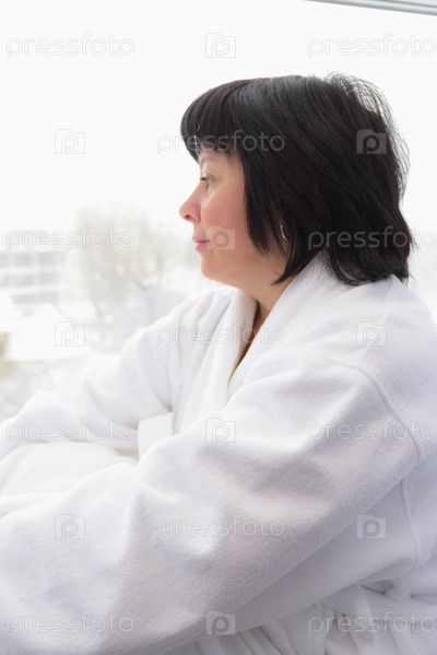 Женщина средних лет у окна