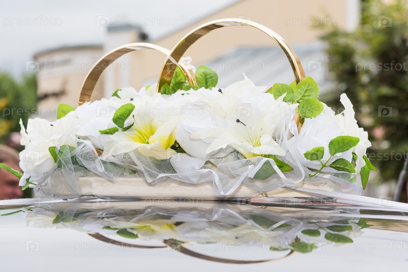 Свадебный букет на крыше автомобиля