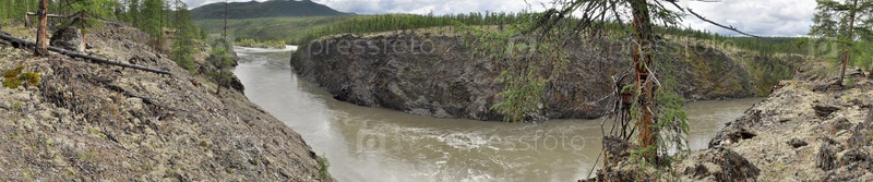 Панорама каньона горной реки в Якутии