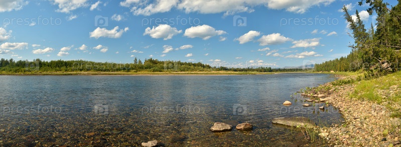 Панорама реки в национальном парке на Северном Урале