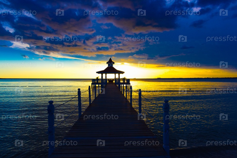Беседка в море на закате