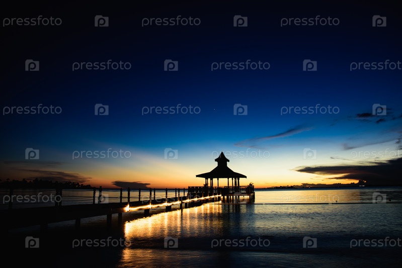 Беседка в море на закате