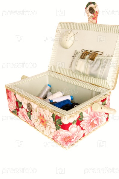 Ларец для ниток и иголок на белом фоне