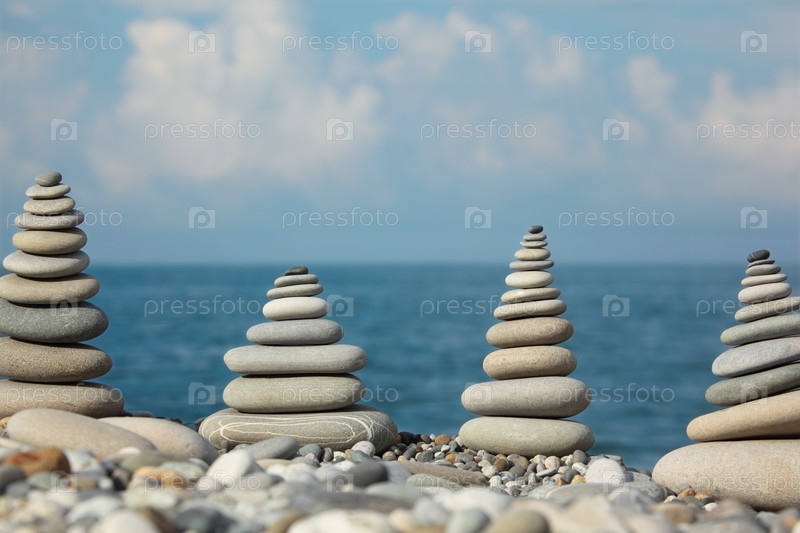 Кучки камней на фоне моря