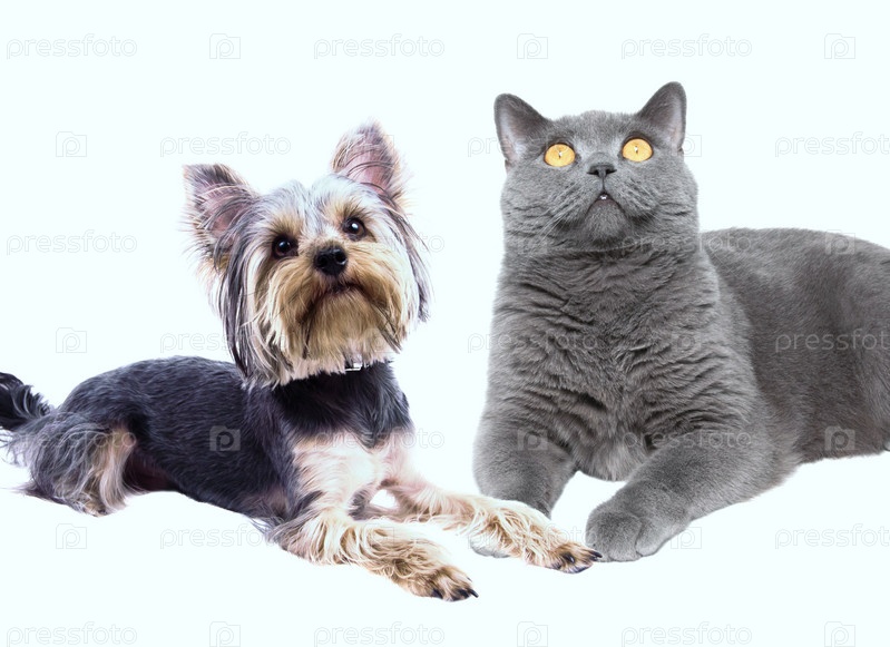 Собака и кошка, сидя рядом