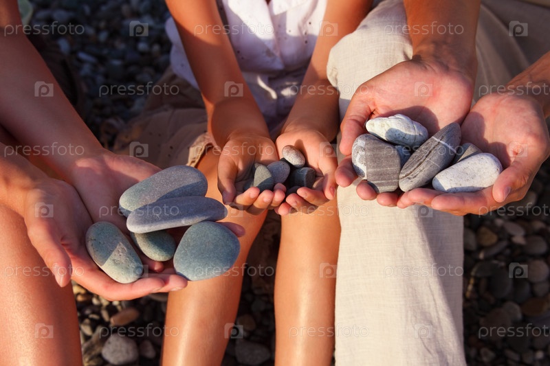 Люди держат морские камни в руках