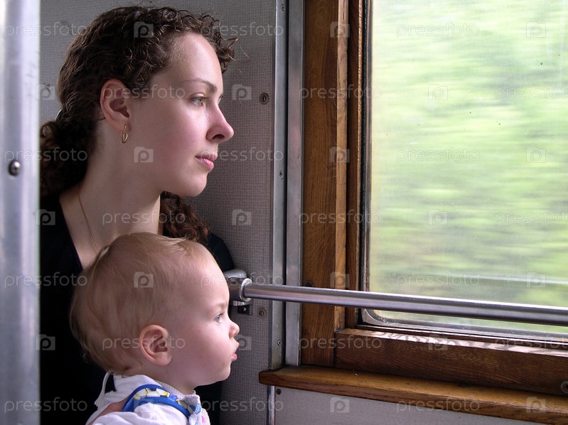 Путешественники смотрят в окно поезда