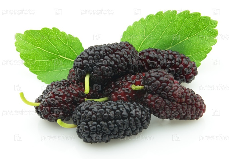 Плоды шелковицы на белом фоне