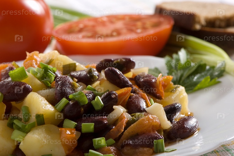 Салат с помидорами, картофелем и фасолью, китайское блюдо