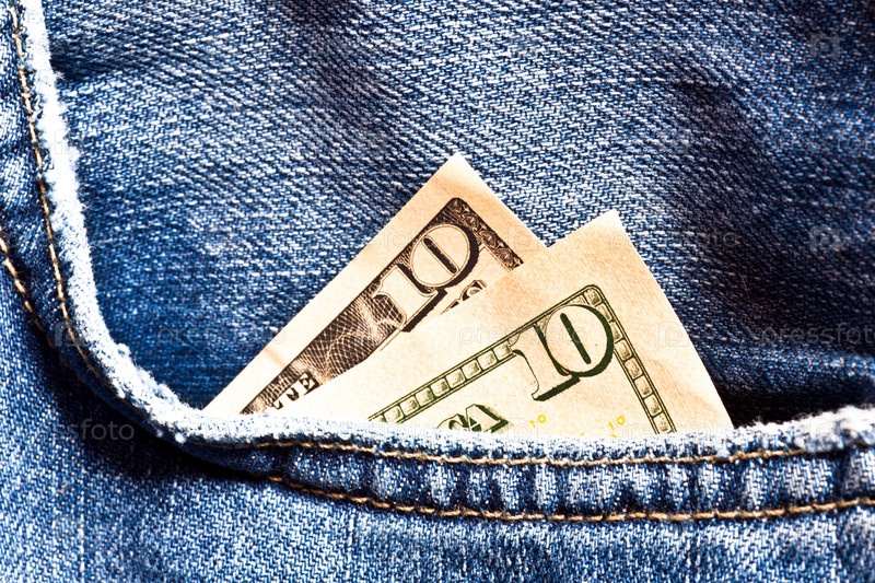 Джинсовые карманы с двадцатицентовой евромонетой
