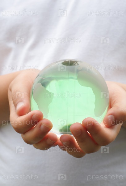 Стеклянный глобус в детских руках
