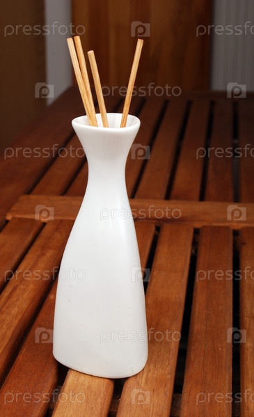 Белая ваза с палочками как набор для медитации и релаксации
