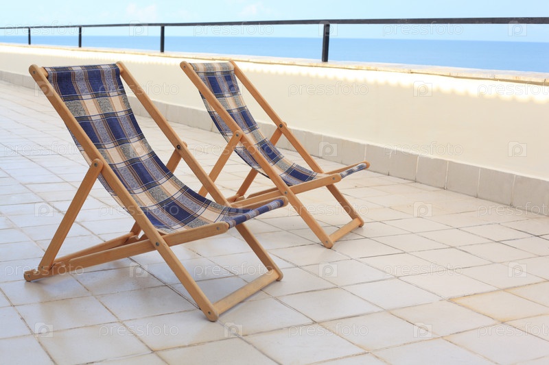 Два шезлонга на веранде на море