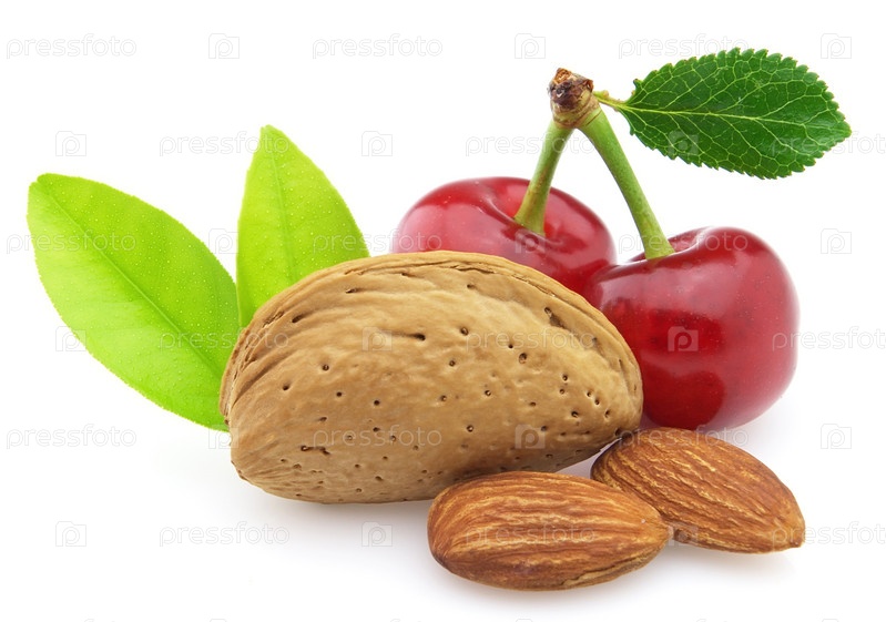 Вишня и миндаль на белом фоне