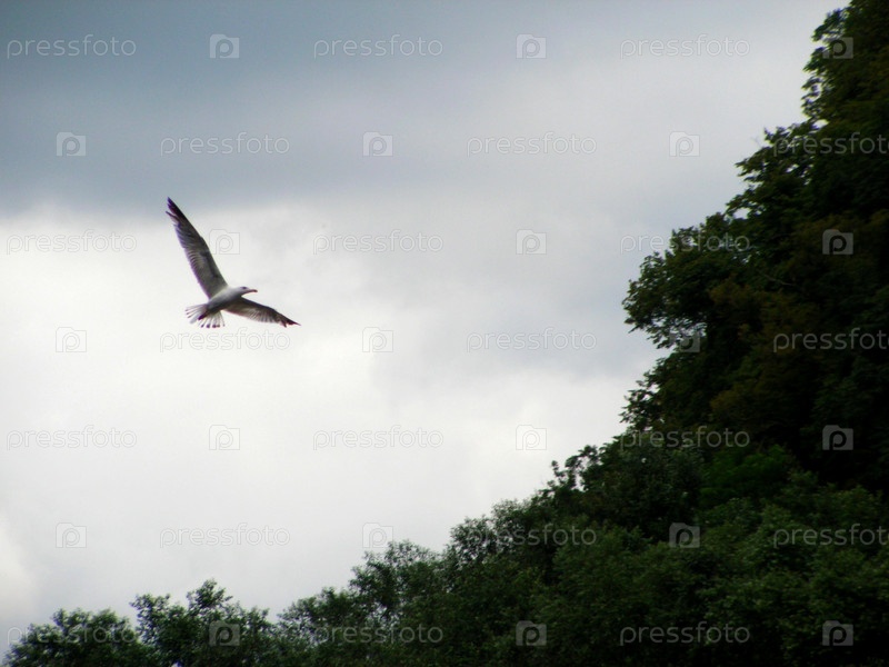 Летящая над лесом птица