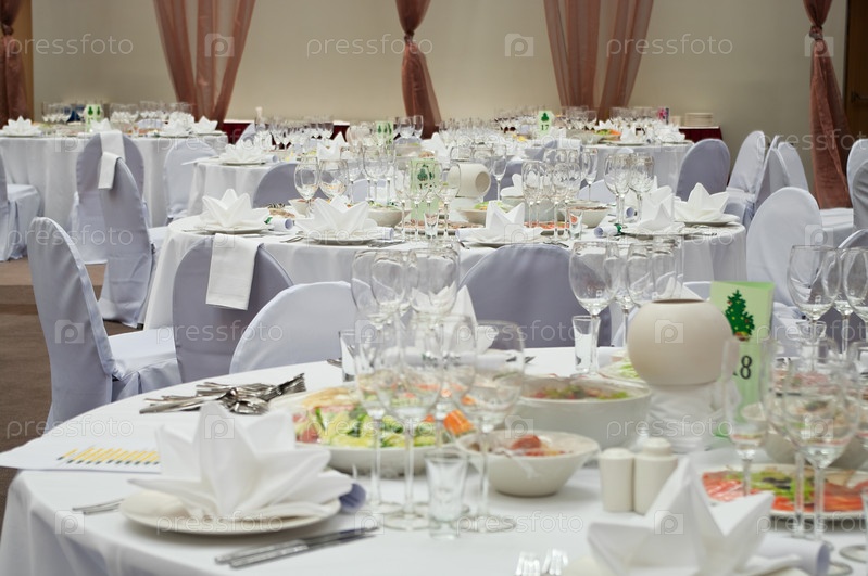 Сервированные столы для гостей свадьбы